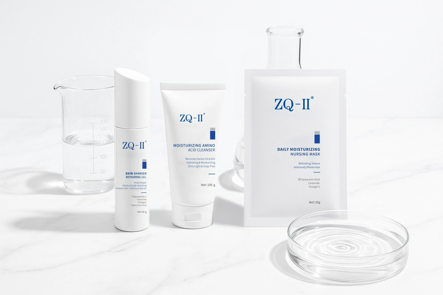 ZQ-II-n, larruazaleko oinarrizko beharrak asetzeko diseinatutako produktu anitzeko produktuak eskaintzen ditugu alferrikako konplexutasunik gabe: